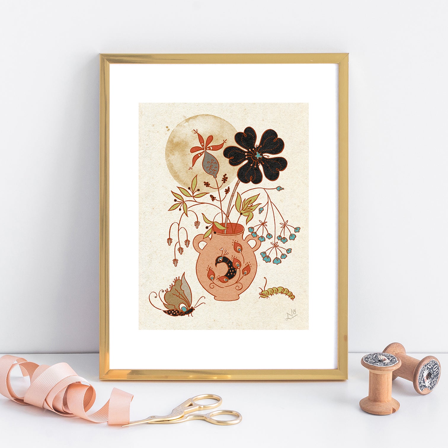 • Branded insert with other available floral thumbnails attached to chipboard.